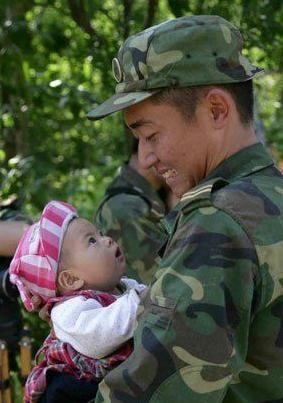 在天涯論壇上出現(xiàn)一張感人的圖片。一名抗震救災(zāi)的兵哥哥,面帶溫柔注視著懷里的嬰兒。照片中的男主角已成為眾多女孩心中的“白馬王子”。