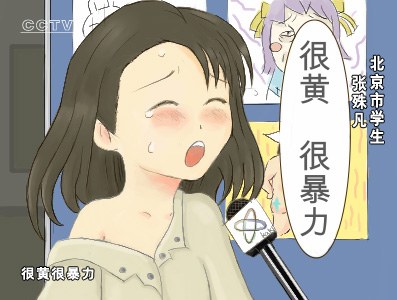 13歲女孩張殊凡在接受采訪時說:“上次我上網(wǎng)查資料,突然彈出一個網(wǎng)頁,很黃很暴力,我趕緊把它關了!边@句話掀起的“旋風”恐怕是央視所始料未及的。同時,它也將很×很××這一句式演繹到了登峰造極的地步。