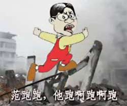 汶川大地震發(fā)生時,四川省都江堰市光亞學校語文老師范美忠丟下學生一個人跑出了教室,因此被網(wǎng)友稱為大地震中“最無恥教師”,取名“范跑跑”。