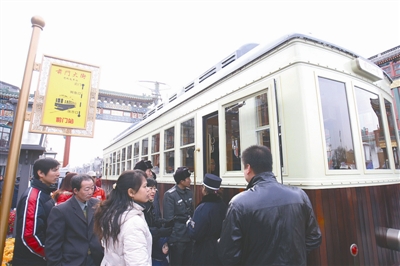 記者看到,“鐺鐺車”受到老人和孩子們追捧。老人多半來“尋舊”,小孩多為“嘗鮮”。馮先生一家原來住西直門,后來搬到了天通苑,他90歲的老母親昨天專程從天通苑趕到前門,就為坐一趟“鐺鐺車”。而只有2歲的小盈則一直纏著姥姥,要坐鐺鐺車。