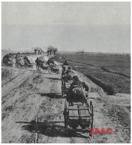 12.淮海戰(zhàn)役中,中原人民支援我軍彈藥、物品的架子車隊(duì)