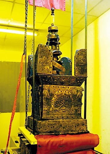 南京古長干寺地宮出土的七寶阿育王塔(見圖)去年11月被取出鐵函后,有關(guān)是否進(jìn)一步開啟阿育王塔的爭論日趨激烈。南京佛教界人士認(rèn)為,如果不能制定完善的保護(hù)方案,開啟阿育王塔不僅會(huì)對寶塔本身造成更大的破壞,而且可能會(huì)破壞佛教至寶“佛頂真骨”,由此必將嚴(yán)重傷害全世界佛教信徒的感情。