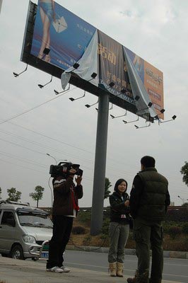 而這兩塊廣告牌正是屬于出走天娛的原天娛傳媒副總經(jīng)理王偉的新公司——新活動(dòng)傳媒的,據(jù)該公司負(fù)責(zé)人介紹,該廣告牌為去年9月向廣告公司開(kāi)始租用的,主要用于公司日常所運(yùn)營(yíng)的活動(dòng)宣傳,這一次關(guān)于新書《非常媒戒》的廣告牌,則是在剛剛掛上一天不到的時(shí)間里,就遭到了盜毀。