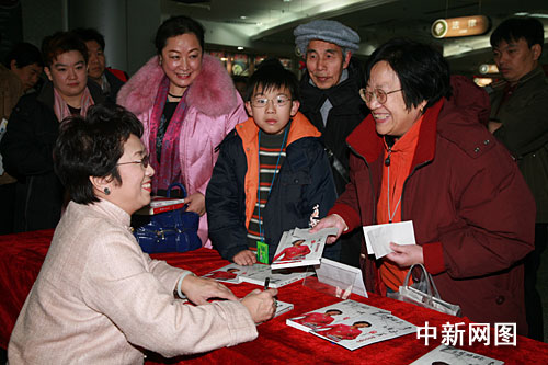 中新網(wǎng)1月19日電 1月17日上午10點(diǎn)30分,北京電子音像出版社在西單圖書大廈舉行《李玉芙——京劇唱腔專輯》簽售儀式。著名京劇表演藝術(shù)家、梅蘭芳親傳弟子、梅派名家李玉芙和著名話劇表演藝術(shù)家石維堅(jiān)出席了該儀式。現(xiàn)場(chǎng)聚集了眾多李玉芙的忠實(shí)觀眾,爭(zhēng)相與心目中的大師合影留念,氣氛十分熱烈。