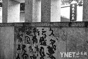 當他的傳記電影熱映的時候,他的墓地卻遭人涂鴉。日前,海淀區(qū)香山腳下萬花山梅蘭芳墓地,由海淀區(qū)文物局所立“梅蘭芳墓”告知碑被人涂鴉。而在不遠處的馬連良墓地上的平臺座也遭受到了同樣的境遇。