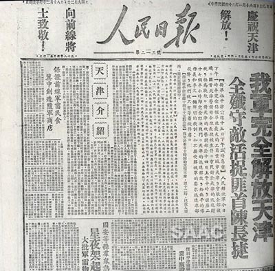 3.1949年1月16日,《人民日報》關(guān)于天津解放的報道