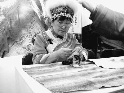 “鞋雖小,要做兩天呢。魚皮從剝下、去鱗、晾干、軋熟、裁剪縫制,工序多,很累人,要花幾天工夫的!闭f(shuō)話時(shí),她手里的針仍然在來(lái)回穿梭。這里的她,是黑龍江同江市津街口鄉(xiāng)漁業(yè)村的漁民尤文鳳,魚皮服制作技藝的國(guó)家級(jí)代表性傳承人。中國(guó)非物質(zhì)文化遺產(chǎn)傳統(tǒng)技藝大展,目前正在北京舉行,大展期間,隨著人流走進(jìn)展館時(shí),我在她的展位前一再流連。
