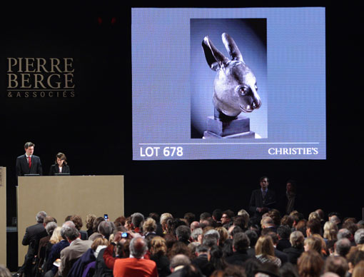 國家文物局在《表態(tài)》中說,佳士得拍賣行(CHRISTIE’S)已于當(dāng)?shù)貢r間2月25日在法國巴黎拍賣了圓明園鼠首和兔首銅像。國家文物局明確表示: