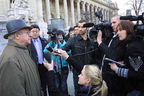 據(jù)法國《歐洲時報》報道,2月25日下午,在圓明園獸首拍賣前夕,部分旅法華僑華人與留學生自發(fā)到巴黎大皇宮前拍賣現(xiàn)場外,散發(fā)說明圓明園劫難及獸首來歷的小冊子,告訴法國人圓明園歷史的真相,表明旅法華僑華人及留學生的立場,督促有良知的法國人盡快通過一定渠道歸還被劫的歷史文物!秷A明園大劫難》作者、法國歷史學家布里賽等法國友人也到現(xiàn)場宣講真相。這次活動受到法國主流媒體的廣泛關注。