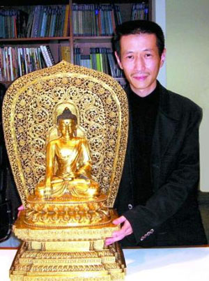 類似的愛國壯舉,蔡銘超不是第一次扛起。2006年10月7日,蔡銘超以1.166億港幣在蘇富比專場拍賣會上拍下絕世銅佛——明永樂鎏金銅釋迦牟尼坐像。這坐有600年歷史的銅像是明代早期體形最大、手工最細致的銅像之一,世上僅存兩座,無論是品質(zhì)或保存狀況,均比現(xiàn)藏于倫敦大英博物館的一座優(yōu)秀,是最重要的永樂銅鑄佛像。