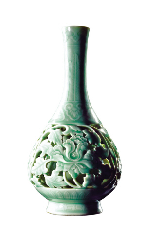 除了八方蓋盒,此次香港蘇富比春拍推出的明宣德青花藏文“平安頌”高足碗,預(yù)計(jì)成交價(jià)超過(guò)2000萬(wàn)港元,清乾隆粉青釉浮雕芭蕉葉鏤空纏枝牡丹圖長(zhǎng)頸膽套瓶,估價(jià)1500萬(wàn)至2000萬(wàn)港元,現(xiàn)今只有一件造型紋飾與它完全一致的玲瓏瓶,目前藏于北京故宮博物院。而這些拍品同屬一個(gè)專場(chǎng)——“玲瓏八寶——?dú)W洲私人清宮御瓷收藏專場(chǎng)”。