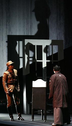 相比原著小說,舞臺(tái)上的《風(fēng)聲》敘事和人物情感更為跌宕和大線條,因此頗具沖擊力,但很多細(xì)節(jié)和人物的合理性因此略顯不足。不過,一波三折的故事情節(jié)和抽絲剝繭的謎底揭曉,始終讓全劇保持著可看性。尤其是下半場,和上半場為交代情節(jié)略顯拖沓的節(jié)奏相比,更為緊張和精彩。