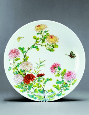 由于歷史原因,日本是世界上收藏中國古代藝術(shù)品的最大“倉庫”之一,佳士得、蘇富比等各大公司對(duì)日本的民間收藏緊追不舍。2008年,保利更是在日本設(shè)立事務(wù)所。去年秋拍中亮相的明清官窯瓷器,就是一個(gè)日本財(cái)閥家族百年來的收藏。其中,清雍正年間粉彩過枝菊蝶九秋盤被拍出1187萬元人民幣的高價(jià)。