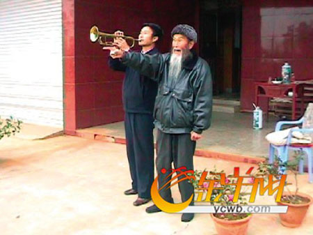 張老漢的兒子叫張云蜀,他文革時在毛澤東思想宣傳隊吹軍號。所以,張老漢讓他吹軍號,自己高聲唱200師的軍歌。讓我吃驚的是200師的軍歌就是《義勇軍進行曲》!