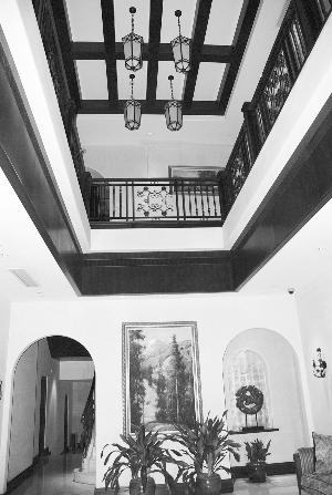 推開足有五米寬鏤空鐵藝的玻璃大門,記者走進(jìn)這幢神秘的建筑,只見大廳寬敞氣派,內(nèi)部家具擺設(shè)復(fù)古而豪華,墻上則是一些老的照片和油畫作品,燈飾也是流行于民國時(shí)期的西洋式樣。大廳一角的用途為接待客人,兩旁為居住區(qū),都是一間間單獨(dú)的客房。