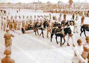 開國大典籌委會成立不久,就設(shè)立了閱兵指揮機(jī)構(gòu)。這個(gè)指揮機(jī)構(gòu)的領(lǐng)導(dǎo)力量很強(qiáng)。閱兵總指揮由華北軍區(qū)司令員聶榮臻擔(dān)任;副總指揮由楊成武(第二十兵團(tuán)司令員)、唐延杰(華北軍區(qū)參謀長)、唐永健(華北軍區(qū)司令部作戰(zhàn)訓(xùn)練處處長)、劉仁(中共北京市委副書記)、肖明(北京市總工會主席)、肖松(中國新民主主義青年團(tuán)北京市委書記)等人擔(dān)任。楊成武兼任閱兵指揮所主任,唐延杰兼副主任。