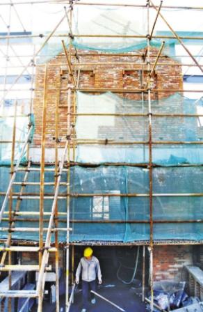 記者昨天在這座紅磚老建筑旁看到,全面包裹的房屋內(nèi),施工人員正對外立面及內(nèi)部部分結(jié)構(gòu)進(jìn)行全面修繕。在一旁的倉庫內(nèi),原本房屋內(nèi)的木雕扶手,護(hù)欄等已經(jīng)被拆下保存,將等到房屋修繕竣工后才重新還原,F(xiàn)場一位施工負(fù)責(zé)人告訴記者:“保護(hù)原始風(fēng)貌,整個(gè)建筑將進(jìn)行外墻翻新和內(nèi)部及屋頂天臺等的布局調(diào)整,工程將于今年6月底完工!