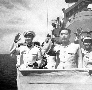 當(dāng)天,離閱兵還有一小時,青島海軍基地機關(guān)、學(xué)校、部隊組成的軍官隊伍已經(jīng)整整齊齊地排列在碼頭上。東海艦隊司令員陶勇率領(lǐng)的我國自行裝配的護衛(wèi)艦“昆明”號和另一艘軍艦也由上海趕到青島,接受總理的檢閱。9時許,周總理一行在肖勁光的陪同下來到了碼頭。