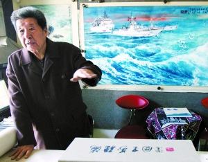 時值海軍成立60周年,78歲的李海濤向本報展示他40年來所畫的海洋圖,包括《萬國海疆圖》和海軍赴索馬里出征圖。李海濤回憶,曾經(jīng)有一位普通的海軍士兵看完他的畫說:“60年前的我們有海無防,但我們有這么美麗的海,可以來保衛(wèi)它,是一種驕傲!