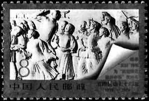 1969年的“五四”青年節(jié),我國(guó)發(fā)行“紀(jì)37”《紀(jì)念五四運(yùn)動(dòng)五十周年》紀(jì)念郵票一套兩枚,這套郵票的面值均為8分,由鄧錫清設(shè)計(jì)。郵票主圖分別為“發(fā)揚(yáng)‘五四’光榮傳統(tǒng)”和“為偉大的新長(zhǎng)征貢獻(xiàn)青春”,其中第一枚郵票的主圖實(shí)質(zhì)就是天安門廣場(chǎng)上人民英雄紀(jì)念碑中的“五四運(yùn)動(dòng)”浮雕。