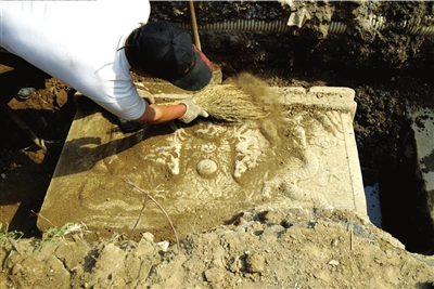 經(jīng)過村民們連續(xù)幾天的挖掘,昨天,昌平區(qū)舊縣村發(fā)現(xiàn)的石碑終于露出了“真容”,石碑分為寫有碑文的碑身和印有二龍戲珠圖案的碑座,碑文顯示該石碑為重建寺的碑記。昌平區(qū)文委和昌平文物所工作人員說,該碑的價值有待進一步研究。