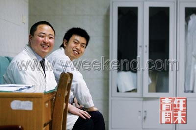 在整容室里,因為同齡,張洋和張祺關(guān)系很好。張祺相對活潑點,他跟張洋講起昨晚做過一個夢,夢見一哥們掉水里了。在夢里他哈哈地樂著!鞍滋觳荒苄,晚上做夢才能笑!睆堨靼腴_玩笑地說。有時候,哥倆做久了這份工作也感到壓抑,晚上必須找朋友喝酒。朋友都會好奇他們的工作,都覺得怎么也得一月上萬。張洋跟記者嚴肅澄清:真的只有3000多,非常普通的工資標準。