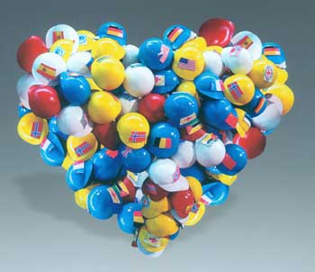構(gòu)思不同、表達(dá)多樣的100多件雕塑,從不同角度展現(xiàn)了地震中人性的堅(jiān)強(qiáng)與抗?fàn)帯H缪嗌酱髮W(xué)藝術(shù)學(xué)院教師吳新的浮雕作品《我們的畢業(yè)照》,展現(xiàn)的是一張老師缺席的畢業(yè)照,作者為地震中老師的犧牲精神所感動(dòng),并期望將這種感動(dòng)傳達(dá)給觀眾。西安美術(shù)學(xué)院雕塑系教授周曉東的作品《茂汶蘋果》,雕刻了一個(gè)特殊的蘋果,裂了口的蘋果上描繪了重建后的家園圖。他說,是四川人都熟知的汶川和茂縣的土特產(chǎn)蘋果給了他表達(dá)的沖動(dòng)。親自去過災(zāi)區(qū)的周曉東深深地體會(huì)到地震中人們的心理障礙,“許多人根本無法面對親人的忽然離去!彼运敢庥脴酚^的蘋果去感染人的情緒,讓他們感受到生的希望,因?yàn),比自然?zāi)難更可怕的是人的絕望。天津美術(shù)學(xué)院學(xué)生韓帥、宋曉燕、李鵬共同創(chuàng)作的作品《關(guān)愛》,將貼有各國國旗的五彩安全帽組合成心形,既使觀眾重溫了國際救援愛心行動(dòng)帶來的希望與感動(dòng),也不禁為“80后”藝術(shù)家的巧妙構(gòu)思而叫好。
