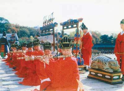 韓國(guó)宮廷宗廟祭禮樂(lè)于2001年被聯(lián)合國(guó)教科文組織宣布為人類口頭和非物質(zhì)遺產(chǎn)代表作,屬禮儀與節(jié)慶活動(dòng)類別。