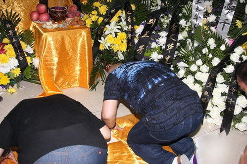 前晚剛結(jié)束人民大會(huì)堂演出的郭德綱和于謙,昨日趕到李文華的靈堂進(jìn)行吊唁,并在李文華的遺像前跪拜。