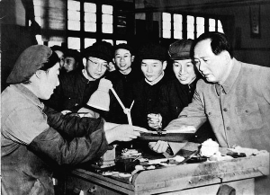 上午十點過一點,李琦有事到車間門口,遠遠看到有許多人走過來,“走在前面的人個子特別高大、顯目,穿著米色的中山裝和風衣,氣度非凡,那除了是毛主席還會是誰?”李琦激動不已;氐杰囬g的崗位上,她的心里怦怦直跳,“主席來了,我要不要和他握手呢?要不要主動向他問好……”