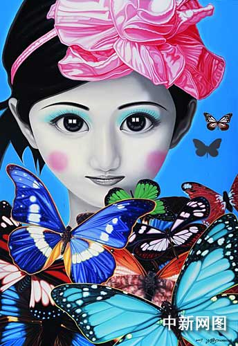 中新網(wǎng)上海六月五日電 (記者 孫璐)由上海藝術(shù)博覽會組委會、上海巴塞藝術(shù)中心等單位聯(lián)合主辦的“蝴蝶飄飄——江衡藝術(shù)作品展”,今天下午在上海美術(shù)館揭開帷幕。另類的美女造型,強烈的視覺沖擊,爭議的藝術(shù)評論,記者在今天開幕的這場畫展上看到的是中國青年藝術(shù)家對于現(xiàn)代藝術(shù)的深層次探索。