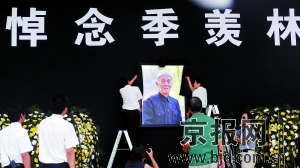 北京林業(yè)大學計算機系大一學生宋婷婷一大早就從學校趕來,她手拿著相機,希望記錄下送別季老的最后一刻!拔沂羌鞠壬睦相l(xiāng),一直特別崇拜季老,覺得他是一位可敬可愛的大師!焙幽系拇髮W生小張暑期來北京打工,今天也特地從朝陽趕到了北大。“太震驚了,季老師的人格、學問和愛國心一直深深感染著我,昨天聽到他去世了,我一晚上都沒睡著,重新看了遍他的《牛棚雜憶》!闭f這話時,小張的眼圈紅了。他說,季先生是自己的偶像,季先生曾經替北大學生看行李的事跡讓他甚是感動。山西的賈先生今天特地從老家趕到北京來送別季老,“愿他一路走好,他永遠是我們心中的大師!