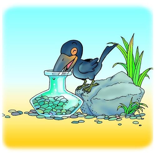 伊索寓言《烏鴉與水瓶》的故事,是講一只烏鴉口渴了,它發(fā)現(xiàn)有個(gè)瓶子裝了水,但水太少,它的嘴不夠長(zhǎng),伸到瓶子里也喝不到水。它想到一個(gè)辦法,就是把一個(gè)個(gè)小石頭投入瓶中,讓水位上升,直到嘴能喝到水為止。