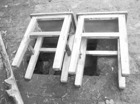 該“地洞”位于景區(qū)碑座南約20米處,神道的東側(cè)。洞口長約40厘米,寬約20厘米,目前,四周已被一條鐵鏈圈住,一個(gè)“小心地滑”的警示牌放在一旁,兩把椅子橫在洞口。透過縫隙向下看,該洞呈圓形,洞底距離地面約有50厘米,里面有一些雜物,洞口周圍的青磚,也出現(xiàn)了松動(dòng)跡象。