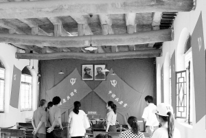 與北京的“人民大會(huì)堂”截然不同的是這里極其簡樸的環(huán)境。八月初的一天,前來參觀的人們排著隊(duì)有秩序地瞻仰著這里的一切。撫摸著一排排簡陋的桌椅,每一位觀眾心頭都難掩無限感慨。
