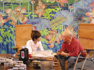 黃永玉在北京的居所——萬荷堂充滿了田園風(fēng)光和藝術(shù)氣氛,成了本次“求學(xué)”對話的最佳地點(diǎn)。來到京郊,漸漸行至萬荷堂,原本因胃痛而精神不佳的郭敬明忽然緊張起來,見慣了大場面的他反復(fù)表示“很緊張”。沒有上課鈴,《大師課堂》悄然開始,“老師”也走了出來。首次見到黃永玉老先生,郭敬明不停地翻看手中的文稿,為接下來的會面做著準(zhǔn)備。不過,我們從他的眼神中,也看出了他內(nèi)心的期待。