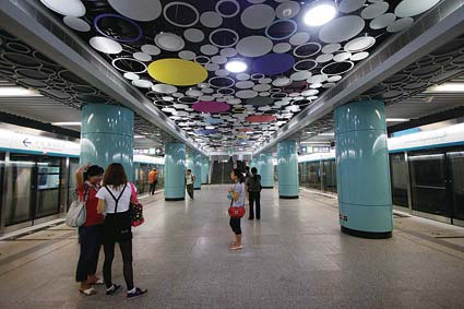 將于9月底通車的地鐵4號(hào)線"鎖定"了8個(gè)重點(diǎn)車站裝飾藝術(shù)壁畫。