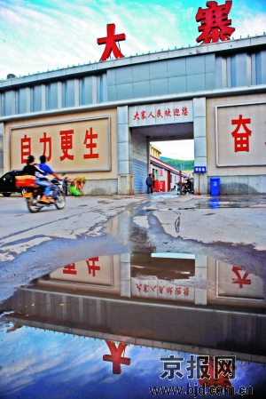 兩個(gè)醒目的巨型紅字“大寨”矗立在村口,提醒人們它往日的輝煌。昔日紅遍全國的樣板村,如今重新回歸為一座安靜的旅游小鎮(zhèn),這其中的巨大反差,只有大寨人自己才能體會(huì)。1966年8月12日, “農(nóng)業(yè)學(xué)大寨”這一口號(hào)正式向全國推出。從此,大寨走上神壇,每年都要接受數(shù)以百萬計(jì)參觀者的朝圣。如流的人潮在1979年戛然而止,大寨也逐漸淡出人們的視線。時(shí)代巨變,讓大寨人感受到前所未有的冷遇,英雄時(shí)代一去不復(fù)返。困惑不解的大寨人經(jīng)歷了很長一段的心態(tài)調(diào)整期。改革開放后,大寨人猛醒,至少他們還有老本可吃,被全國人民熟知的“大寨”,不就是一塊金字招牌嗎!隨后,以大寨為品牌推出的核桃露、酒、羊絨衫等一系列產(chǎn)品,也成了大寨人二次創(chuàng)業(yè)的新起點(diǎn)。如今,大寨利用自己的品牌優(yōu)勢,不僅帶動(dòng)了昔陽縣,還帶動(dòng)了周邊地區(qū)共同走上致富之路。