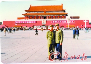 “我們哥倆兒幾乎是同步通過了天安門,這在全國參加國慶閱兵的官兵中都是罕見的。”52歲的李鳴捷如今是中國銀行成都高新技術(shù)產(chǎn)業(yè)開發(fā)區(qū)支行行長。1984年10月1日上午10時(shí)許,展示中國改革開放和現(xiàn)代化建設(shè)巨大成就的國慶35周年大閱兵盛典上,李鳴捷在排序第一的軍事學(xué)院方隊(duì),鏗鏘正步走過金水橋旁。此時(shí),弟弟李明偉和戰(zhàn)友駕駛的機(jī)群,也呼嘯長空,在天安門上空中舞出四色彩煙,共慶盛典。退伍多年,兩兄弟很少主動(dòng)提及這段經(jīng)歷,但當(dāng)年受閱的那身軍裝卻一直珍藏。