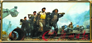 《開路先鋒》作者之一魏景山在接受本報記者采訪時說,《開路先鋒》創(chuàng)作于1972年,當時恰好是《延安文藝座談會上的講話》發(fā)表30周年,全國美展即將舉辦。于是,他和陳逸飛前往南京梅山鐵礦工程采風寫生,回來后就畫了這幅畫。在這幅長達4.5米的油畫上,一群筑路工人抬著鋼軌在風雨中前進,表現(xiàn)出工人階級豪邁的氣概。魏景山告訴記者,《開路先鋒》實際創(chuàng)作就陳逸飛和他兩個人。油畫的背景是兩人共同畫的,畫面上的人物略有分工,“畫面上,那個穿黃色背心的年輕工人就是陳逸飛畫的,我畫了年紀比較大的工人!