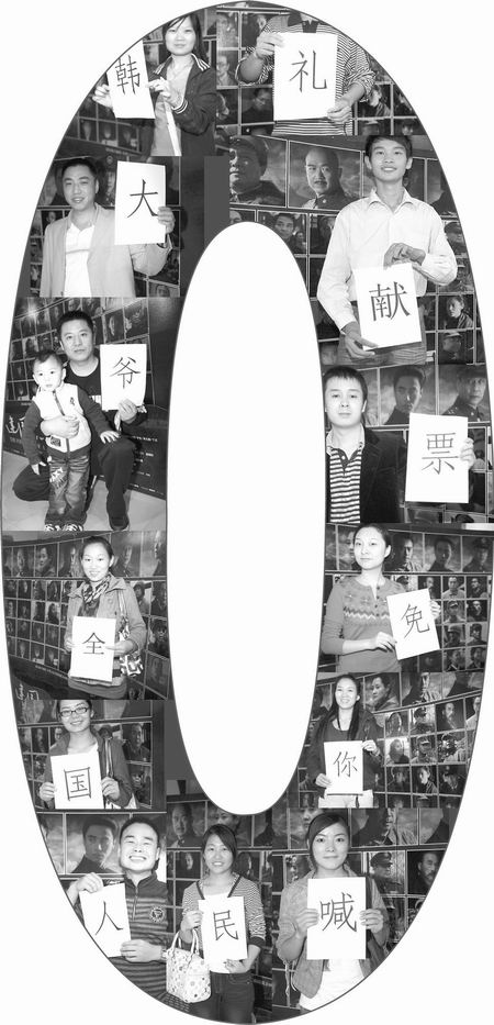 這些網(wǎng)友的思維比較活躍,觀點也有不少調侃的成分!皠〗M要請我們去看,第一次給200元,第二次給400元,第三次,全體演職員請我們吃飯!”網(wǎng)友“瘋狂的石頭”想法也很“瘋狂”!皵(shù)星星數(shù)對的觀眾,影院返還20元,凡觀影的應贈送建國大業(yè)明信片一套,這樣才合理!边@位網(wǎng)友的想法也很有“創(chuàng)意”。另一類網(wǎng)友的觀點如果能付諸實施,最高興的一定是韓大爺。“一直以來,一直是好萊塢大片霸占中國市場,《泰坦尼克號》、《變形金剛》、《哈里·波特》賺走了大把鈔票。《建國大業(yè)》票價應該再提高些,國內票房就是七八億,讓老美看看什么叫做人多勢眾,直接把他們下巴嚇掉!