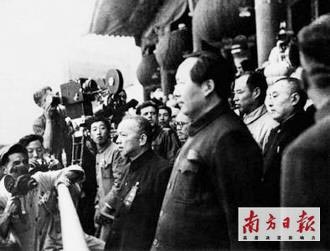 10月1日下午3時(shí),毛澤東、朱德、劉少奇、周恩來和宋慶齡、李濟(jì)深等登上了天安門城樓。中央人民政府秘書長(zhǎng)林伯渠宣布:“請(qǐng)毛主席升國旗!”