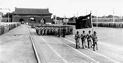 隨后,毛澤東等領(lǐng)導(dǎo)人乘車出中南海東門,從故宮西華門南拐至闕右門,再往南直達(dá)天安門,登上了城樓的100級臺階……