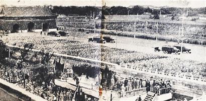 這本1949年由晨光出版公司編輯發(fā)行出版的《開(kāi)國(guó)大典》,封面照片是毛主席在天安門(mén)城樓上觀看閱兵式。打開(kāi)這本巴掌大小的袖珍畫(huà)報(bào),里面收錄了39幅開(kāi)國(guó)大典的珍貴照片,其中閱兵式照片28幅,它們從不同角度反映了參加閱兵的步兵、騎兵、炮兵、裝甲部隊(duì)、摩托化部隊(duì)以及海軍、空軍的英姿,其中許多照片難得一見(jiàn)。