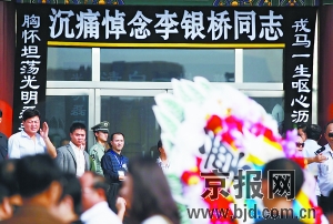 今天上午10時(shí),毛澤東衛(wèi)士長(zhǎng)李銀橋追悼會(huì)在八寶山殯儀館舉行。李銀橋生前同事、友人和眾多滿懷對(duì)老人崇敬之情的市民參加了遺體告別儀式。李敏、毛新宇等毛澤東親屬也來到追悼會(huì)現(xiàn)場(chǎng)。