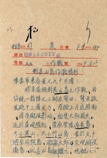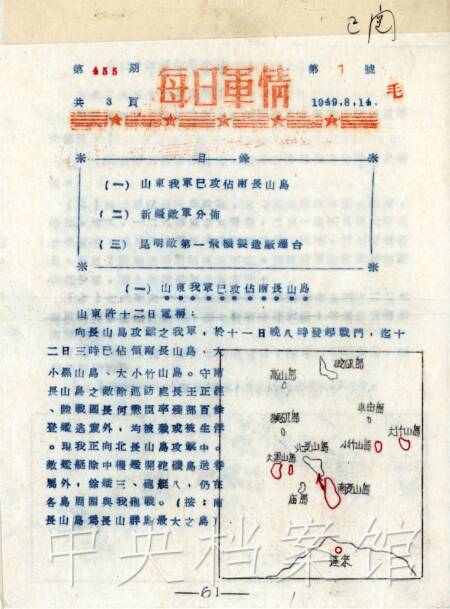 長山列島位于山東半島與遼東半島之間,扼渤海灣門戶,由南、北長山島等17個島嶼組成。山東半島解放后,退據(jù)長山列島的國民黨軍陸戰(zhàn)第2團等部,破壞漁業(yè)生產(chǎn)和海上交通,妄圖封鎖渤海灣。1949年8月,中國人民解放軍山東軍區(qū)指揮進行解放長山列島的作戰(zhàn)。11日晚,第24軍第72師和警備第4、第5旅分別從蓬萊縣劉家旺、欒家口、解宋營起渡。12日凌晨,警備第4、第5旅攻占長山列島兩翼大小黑山島、大小竹山島,牽制停泊在南北長山島的國民黨軍艦艇。第72師在友鄰配合下,接近南北長山島,并在炮火掩護下迅速登島,與國民黨守軍展開激戰(zhàn),上午攻占南長山島,下午占領(lǐng)北長山島。爾后以警備第5旅為主,向砣磯島、大小欽島、南北皇城島發(fā)展進攻。至20日,國民黨守軍殘部棄島逃遁,人民解放軍收復(fù)了國民黨軍隊占領(lǐng)的大小島嶼,殲國民黨軍15OO余人,山東省全境解放。