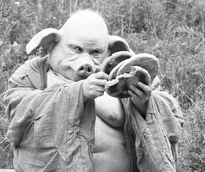 在這組劇照中,有豬八戒咬手指、拿大餅、斜眼看人等,不僅面目可憎,甚至透著一股兇氣。由于豬臉布滿皺紋,頭發(fā)和眉毛皆白,老態(tài)龍鐘,滿臉滄桑。為突出豬八戒的肥壯,演員臧金生還裝了個(gè)假肚,肚上堆滿了贅肉,連后腦勺和后頸部都布滿贅肉。不少網(wǎng)友表示,這個(gè)造型“太像一頭真豬”,沒有半點(diǎn)藝術(shù)美感,不如老版憨態(tài)可掬的豬八戒那么可愛。