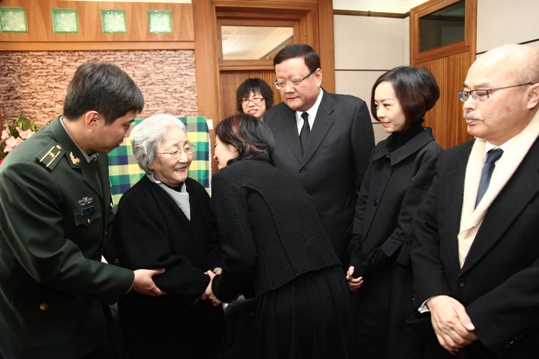 中新網(wǎng)北京11月4日電 今年,在舉辦2008華人盛典頒獎(jiǎng)禮、“蔣英師生作品音樂會(huì)”的過程中,鳳凰衛(wèi)視作為代表性的華文媒體,與錢學(xué)森一家建立了深厚的友誼。10月31日驚聞錢老去世后,鳳凰人一直深深掛念。11月4日,鳳凰衛(wèi)視總裁劉長樂主持人攜陳魯豫、許戈輝、曾子墨及評(píng)論員阮次山赴錢學(xué)森靈堂吊唁,代表鳳凰衛(wèi)視全體員工向錢老致哀。錢老去世后鮮在媒體露面的夫人蔣英女士,平靜祥和地向前來吊唁的劉長樂一行表示感謝。蔣英老人的身體狀況和精神狀態(tài)尚好,令人放心許多。
