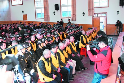 8時(shí)30分,庭審正式開(kāi)始。宣布完法庭紀(jì)律后,審判長(zhǎng)一聲令下:“傳被告人到庭!”緊接著,27名身著橘色背心的被告人被帶上法庭。被告人在魚貫而入時(shí),均不時(shí)向旁聽(tīng)席上張望,而旁聽(tīng)席上也傳來(lái)一陣細(xì)細(xì)的抽泣聲。