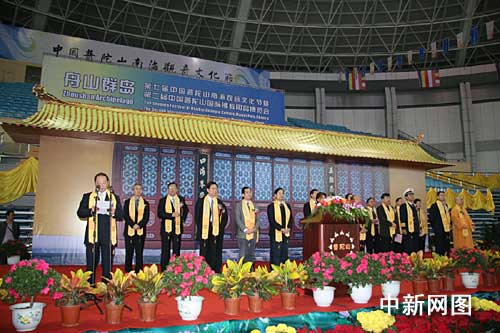 中新網(wǎng)舟山11月15日電(記者 江耘 袁爽 實習(xí)生 沈蘭)11月15日上午,第七屆中國普陀山南海觀音文化節(jié)在浙江舟山普陀山上開幕。本屆文化節(jié)吸引了來自日本、泰國、菲律賓、希臘等國家和地區(qū)的人士前來參加。